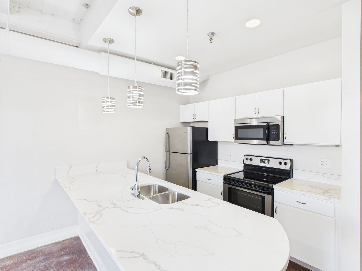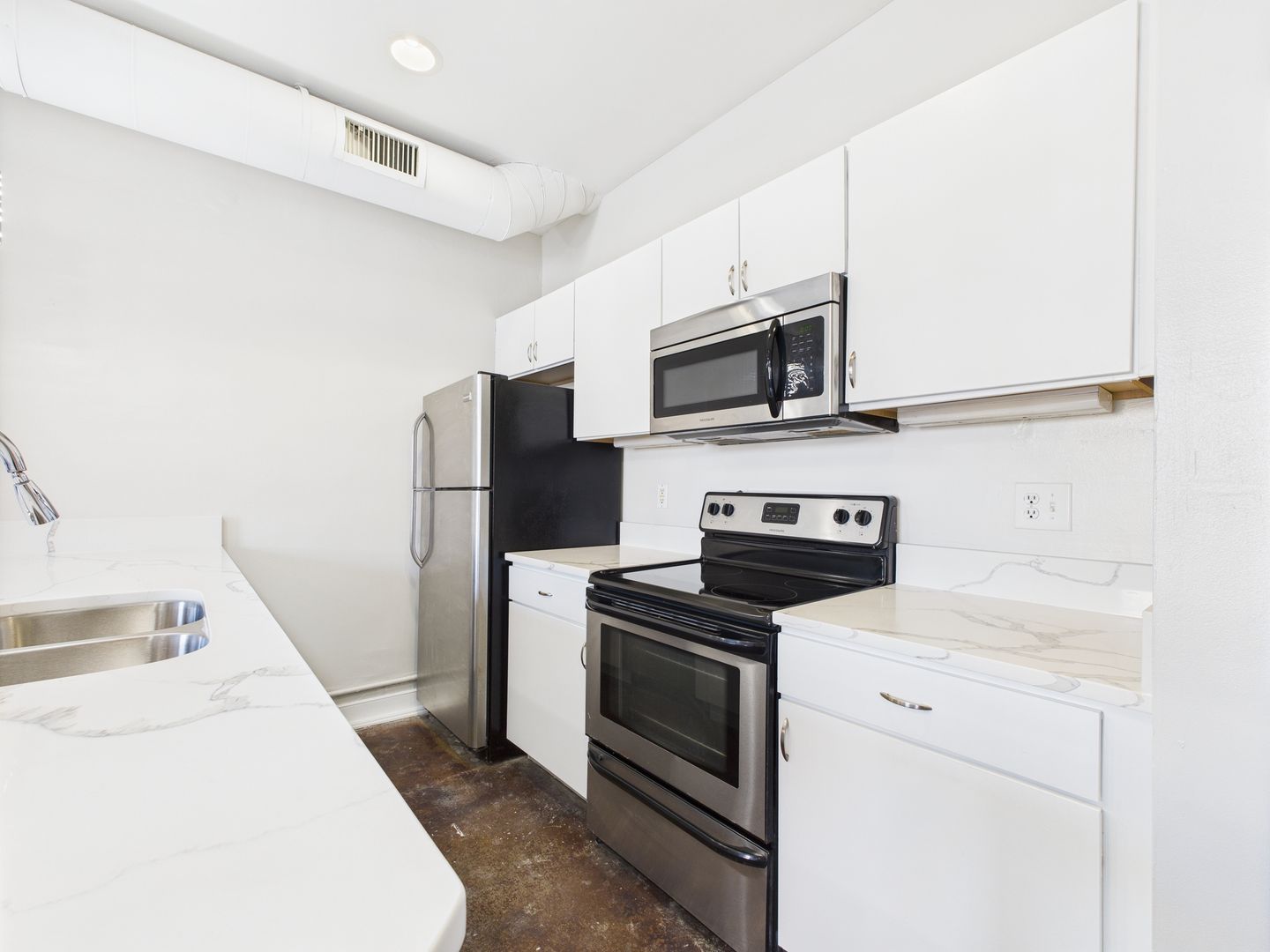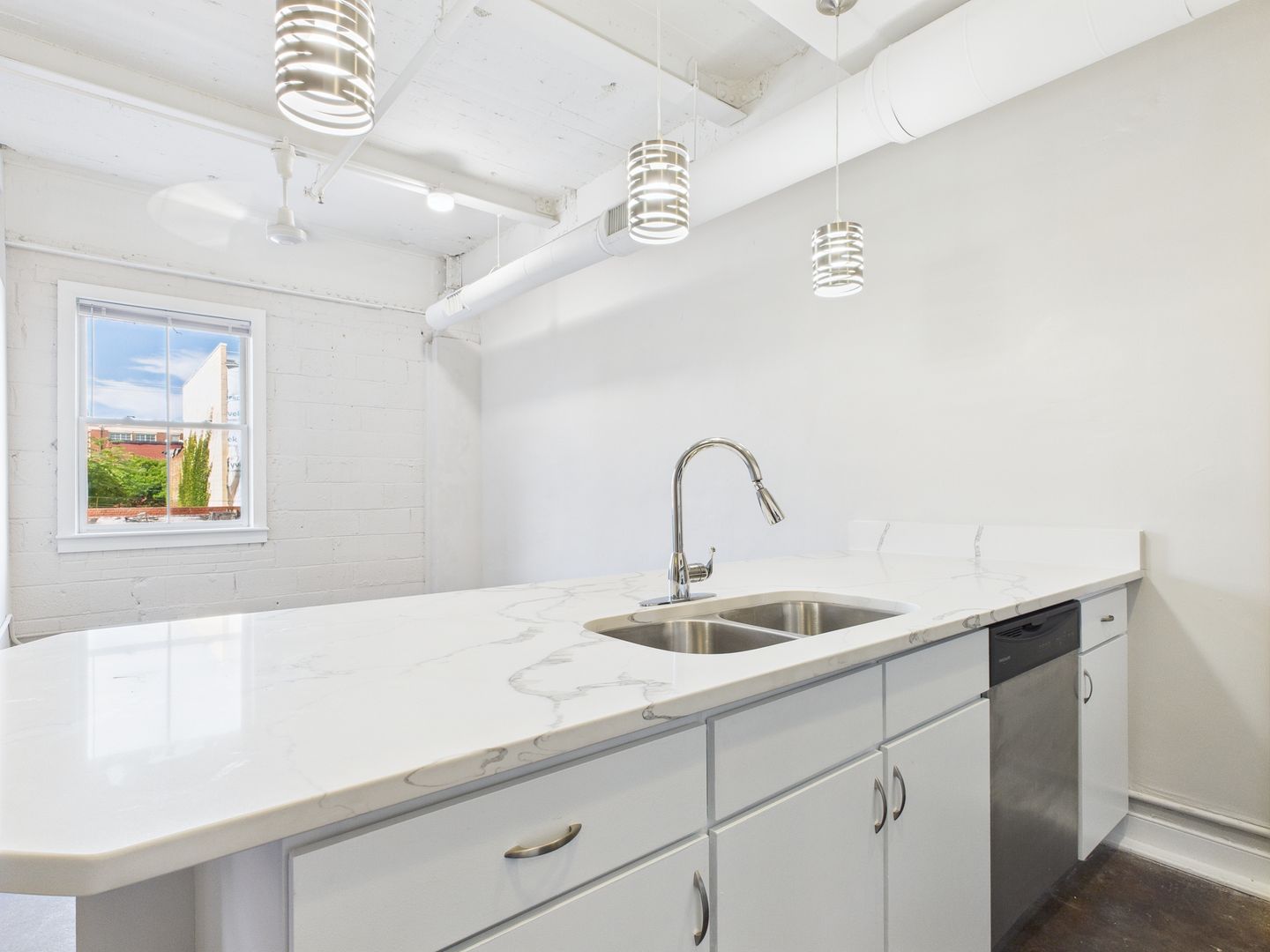 We've just completed a total refresh, meaning you'll be the first to enjoy the fresh paint, brand-new kitchen countertops, and use the completely remodeled bathroom! Situated on the second floor, the apartment offers stunning city views combined with a unique, loft-style architecture.